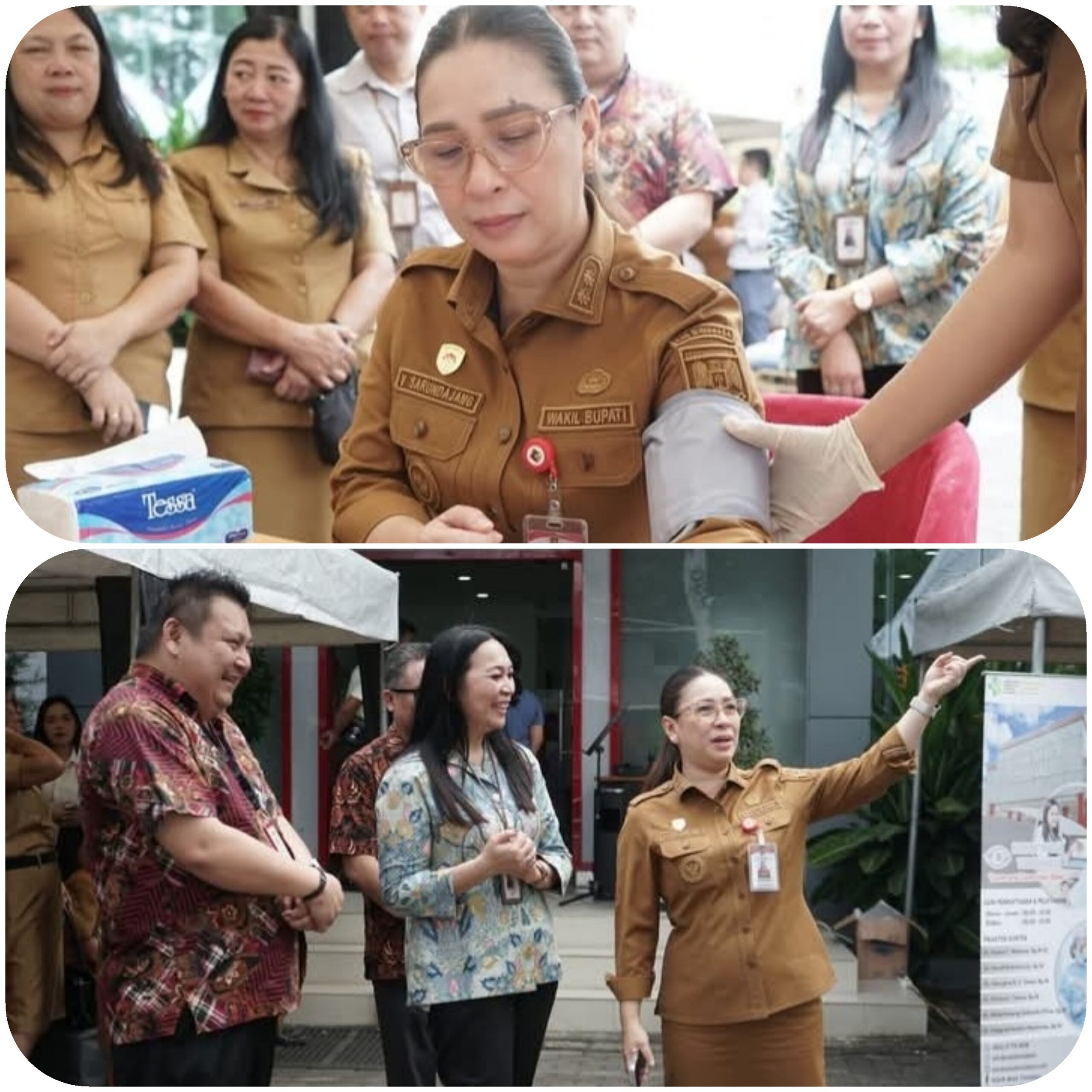 MinahasaChanelpost.com– Wakil Bupati Minahasa Vanda Sarundajang, SS tinjau kegiatan Pemeriksaan Kesehatan Gratis yang digelar Bank SulutGo di halaman kantor cabang Tondano.